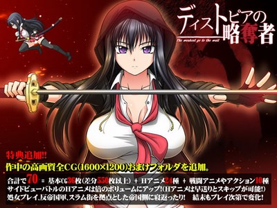 民衆への圧政を行う帝国へ粛清を行う暗殺者、黒の死神ことハヅキがヒロインの同人RPG。反帝国組織に所属する彼女は、現代的な衣装に身を包み、鋭利な刀を手にする。クールビューティーをイメージさせる凛とした黒髪美少女である。そんな彼女のドエロな運命を楽しむことができるマルチエンディングRPG!