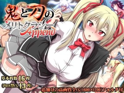 2018年1月11日にDL発売されたONEONE1の人気の同人RPG「鬼と刀のメリトクラシー」のアペンドディスクが登場。基本CG枚数16枚、内エッチCGは13枚を収録。シナリオやボイスの追加はないものの、イベントの演出を補完するCGとして、ファンならば是非手元に揃えておきたいパッチとなっている。